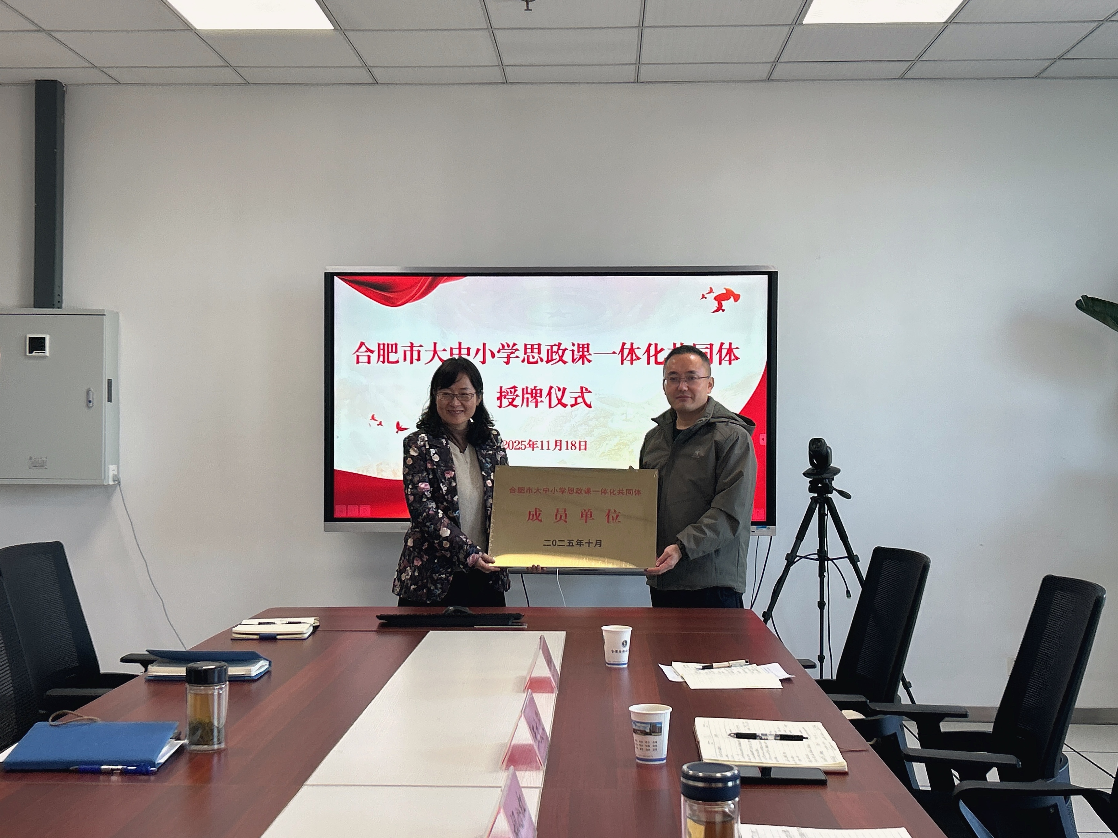 为深入推进合肥市大中小学思政课一体化建设,拓展育人格局,促进优质教育资源向特殊教育领域延伸,11月18日上午,合肥职业技术学院马克思主义学院党支部书记王文飞、院长胡心红等一行赴合肥特殊教育中心开展交流学习,并举行“合肥市大中小学思政课一体化共同体成员单位”授牌仪式。