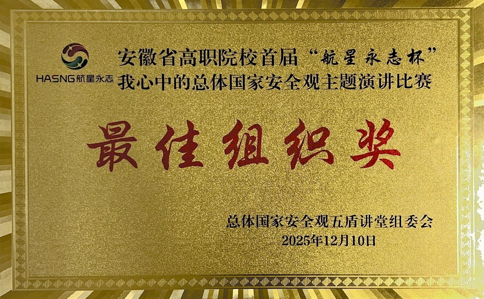 12月10日,安徽省高职院校首届“航星永志杯”总体国家安全观主题演讲比赛,在安徽财贸职业学院翡翠校区报告厅内圆满落幕。由我校马克思主义学院吴敏洁、韩路两位老师指导的24级城轨专业张忻悦同学的作品《蓝天碧海皆国土,青年有志卫中华》在来自全省21支参赛队伍中脱颖而出,荣获二等奖(总分排名第三名),两位指导老师荣获“优秀指导教师”称号,学校被大赛组委会授予“最佳组织奖”,充分体现了我校在深化国家安全教育方面的实践成效。