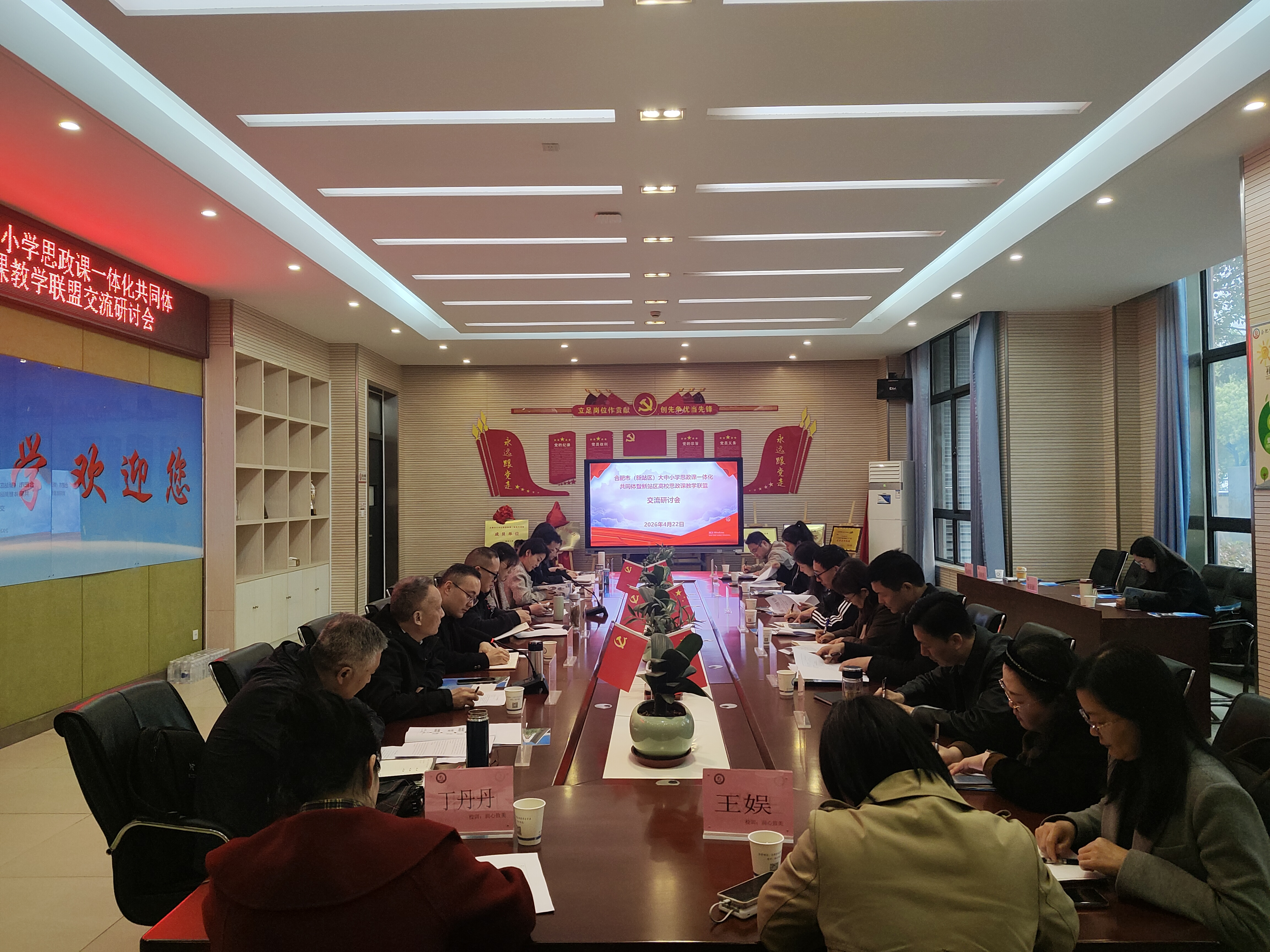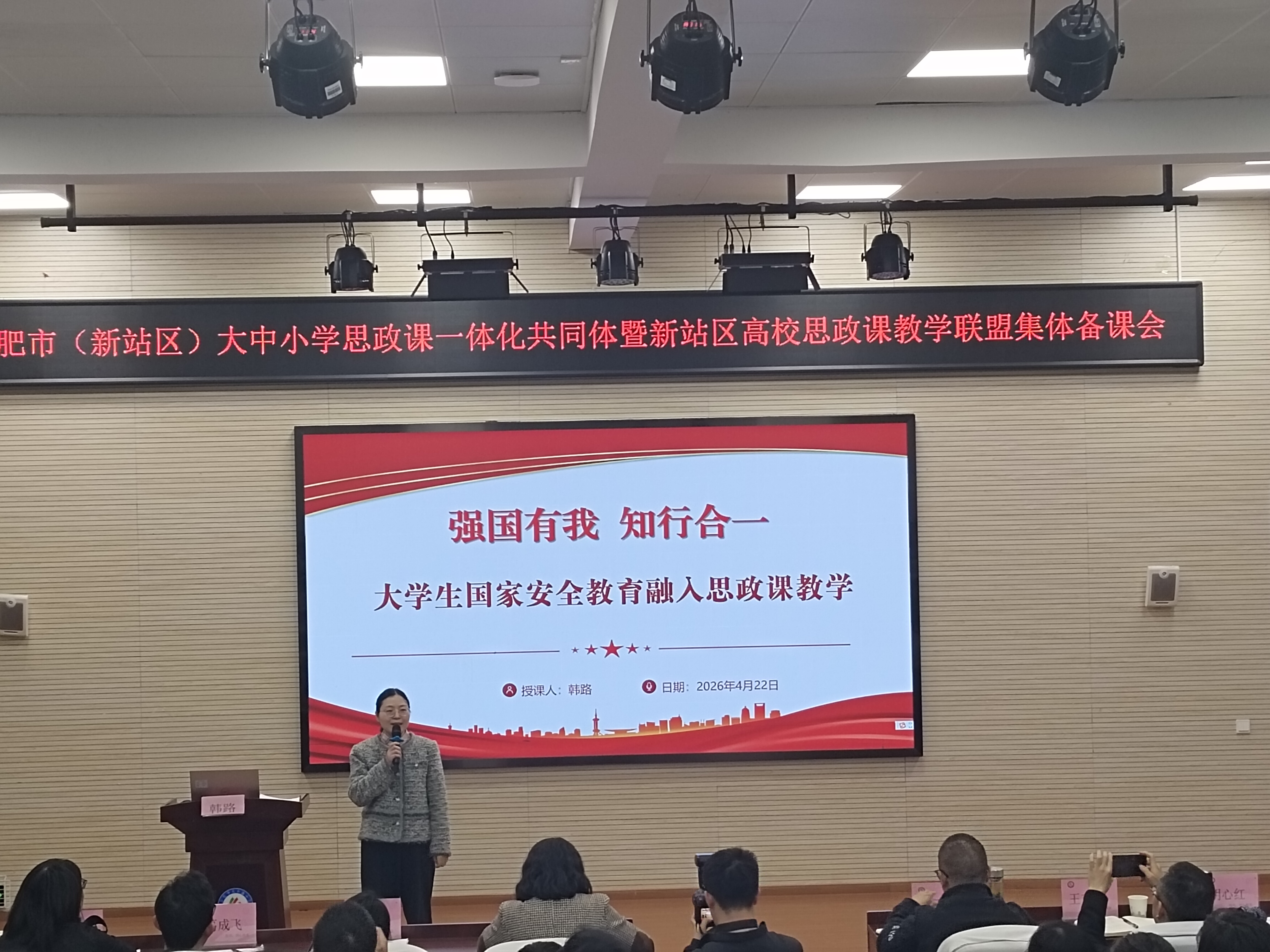 为深入推进大中小学思政课一体化建设,强化区域思政教育协同联动,推动国家安全教育有机融入思政课堂,4月22日下午,由我校主办、合肥市天水路小学承办的合肥市(新站区)大中小学思政课一体化共同体暨新站区高校思政课教学联盟集体备课会在天水路小学顺利召开。共同体和联盟各成员单位负责人及教师代表齐聚一堂,共商思政课改革创新,共筑学段衔接育人新格局。