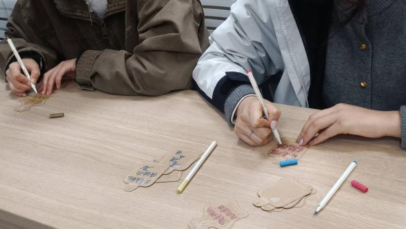 活动开始前,现场布置了温馨的“青春书语”签到墙,在悠扬的轻音乐中,同学们陆续到场,领取“书摘漂流卡”写下自己喜爱的书中名言。一句句或充满力量或温柔治愈的文字,既是阅读的印记,也是思想的传递。活动伊始,主持人向在场同学介绍了本次活动的主题、流程以及核心理念——不设标准答案,欢迎一切真诚的思考。